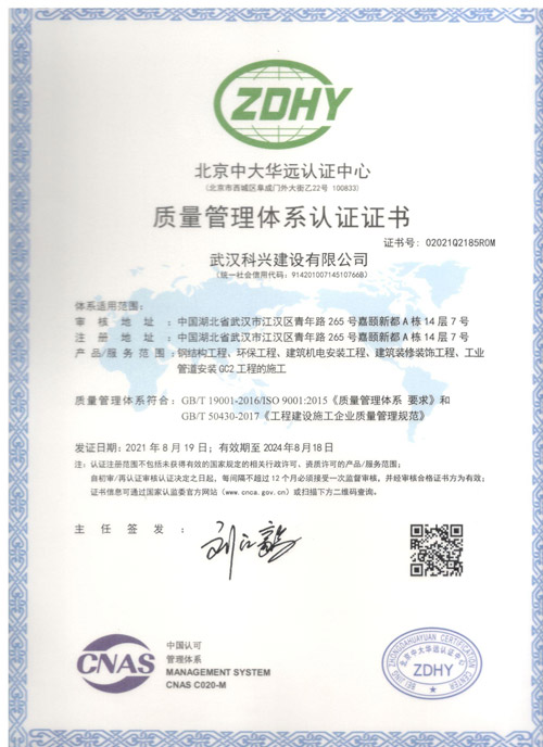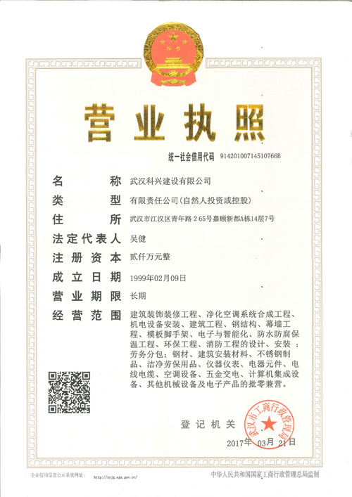 武漢科興建設(shè)有限公司成立于1999年2月9日,是在原武漢科興潔凈工程設(shè)備有限公司的基礎(chǔ)上增資擴(kuò)充而成,是湖北省較早從事空氣凈化系統(tǒng)合成工程設(shè)計(jì),施工,各種機(jī)電設(shè)備安裝工程、環(huán)保及污水處理工程、建筑裝飾裝修工程、鋼結(jié)構(gòu)、幕墻工程、電子智能化、防水防腐保溫工程、消防工程的設(shè)計(jì),施工總承包和勞務(wù)分包的綜合性施工企業(yè),是湖北省技術(shù)質(zhì)量監(jiān)督檢測(cè)部門(mén)認(rèn)定的質(zhì)量可靠的施工單位之一...
